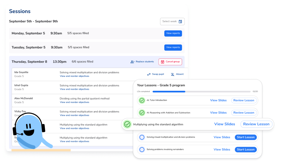 Ad-hoc sessions can take place at any point outside of your school’s scheduled tutoring, perfect for independent practice and immediate intervention.