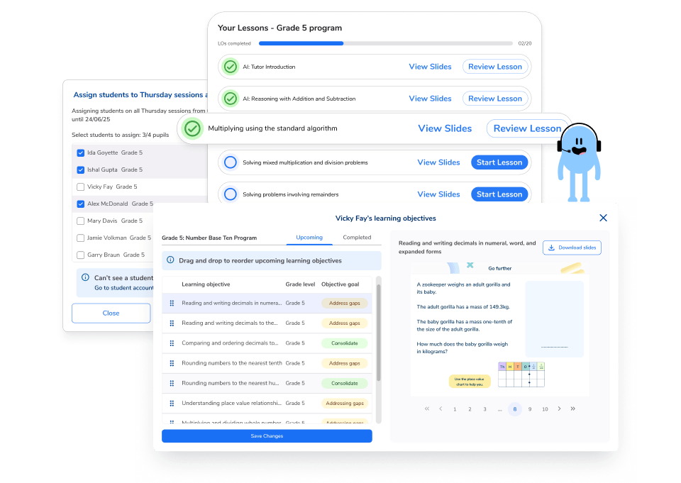 Get in touch today to arrange a free pilot of AI math tutoring with Skye. After a quick call, we’ll set everything up so you can see how your students will benefit from high-dosage one-on-one math tutoring: